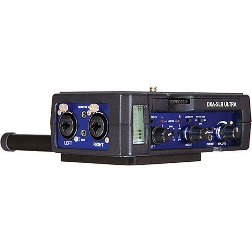 The DXA-SLR ULTRA is very easy to set up and use. The Neutrik brand combo XLR / ¼” inputs makes it easy to attach a variety of audio gear including wireless systems, mixers, sound boards and professional condenser microphones that require phantom power to operate.