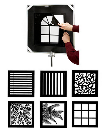 - Window Patterns work with both strobes and continuous lights. Use focusing lights to create more pronounced detail.