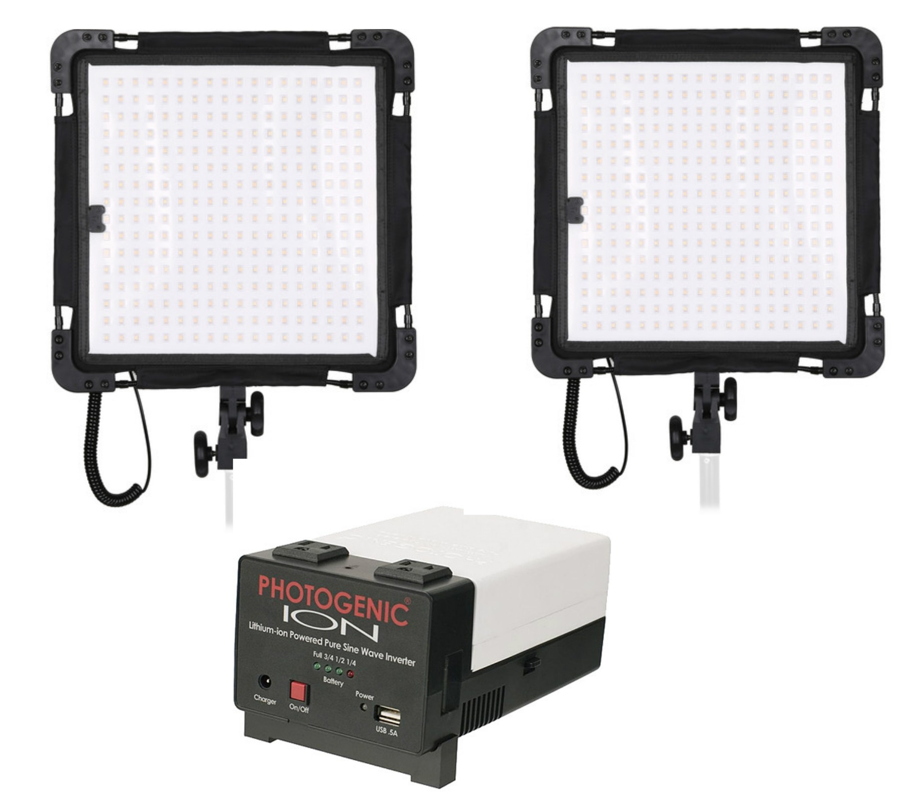 The power and controls are located on a central, separate module that can be powered by AC or DC power via the included v-mount battery plate. Two power outputs on either side of the module can provide output to two YOGA Series flex mats simultaneously. By using the expansion bracket, two YOGA lights can be attached side by side to the center module, creating a high-output panel fixture.