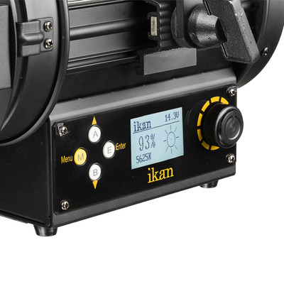 The 4-inch Fresnel lenses can focus from a 60-degree flood to a 15-degree spot. With a high CRI and TLCI, the Helias give shooters all the color they’re looking for and more. A large digital display allows you to move through the menus and tweak settings with ease.