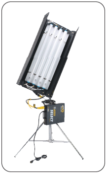 • Same fixture takes daylight and tungsten lamps, plus visual effects color lamps