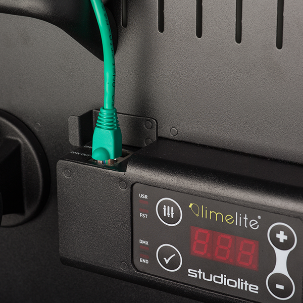 With full DMX input and output control, Studiolites can be controlled remotely from a board, or when daisy-chained, one SLED can master a series of lights from the onboard digital control panel. With dimming options ranging from 100% to 0%, each unit can become a master control for banks of Studiolites via standard RJ45 ethernet/DMX cables. Operating Studiolite DMX lightbanks is quick, easy and intuitive. An additional feature for photographers the ability of the Studiolite SLED to display power output on a linear scale, or more traditional to f-stop units for simplified metering.