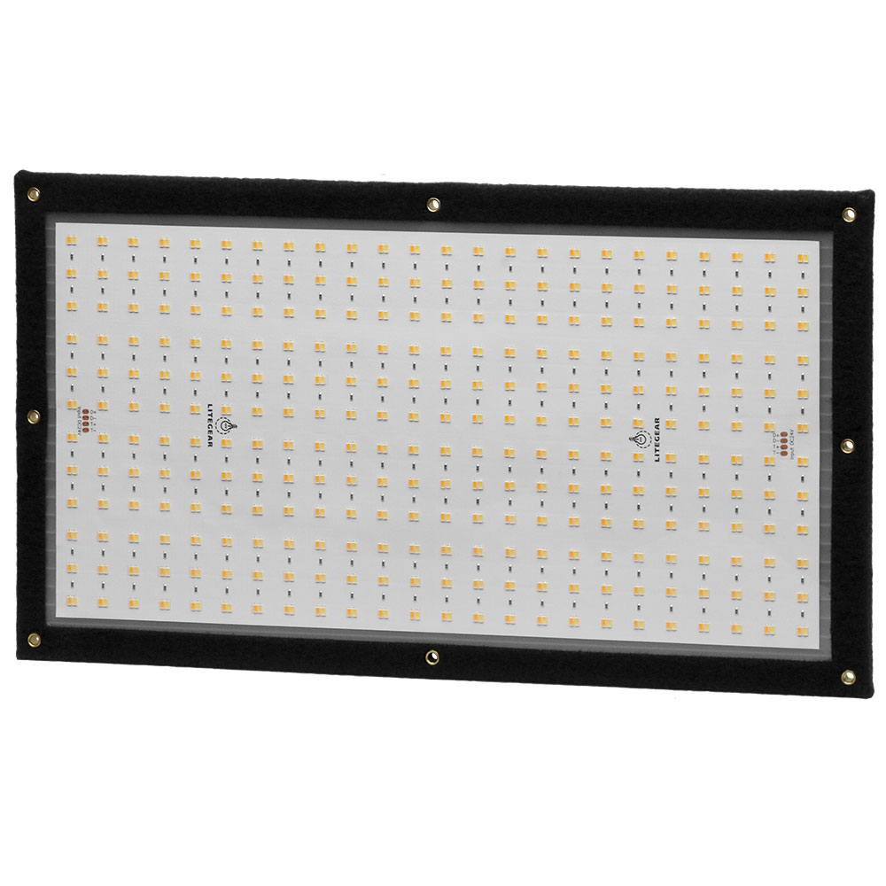 The head unit features 576 new CineMitter LEDs and is covered by a thin, clear polycarbonate layer and bordered entirely with Velcro. “loop” fastener. Mounting is provided with a removable gimbal mount. The “soft through- pixelization” method allows the LiteMat+ Plus 1 to achieve surprisingly bright light levels.
