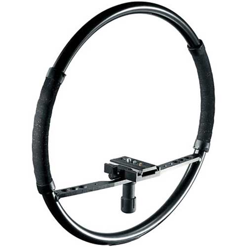 The only modular system in the world to smoothly support the DV camera and act as a frame to mount all the accessories – including zoom controllers, mics, mixers, lights, monitors, arms. A circular frame with a crossbar to mount most mini DV cameras, the Fig Rig becomes part of the body to produce smooth, steady travelling shots. It is this very fact which is the secret to the Fig Rig. As the operator walks, his/her muscles and tendons absorb all the shocks, transferring only fluid movements to the camera. As there are no straps or harnesses attached to the Fig Rig, quick and wide movements can be made within the same shot – from ground-level to overhead, in one smooth movement. The camera, accessories and operator become one, allowing you to film scenes quickly and unobtrusively. With the Fig Rig your creativity is virtually limitless.