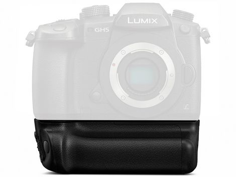 - Ergonomic battery grip for Panasonic LUMIX GH5 mirrorless camera body.