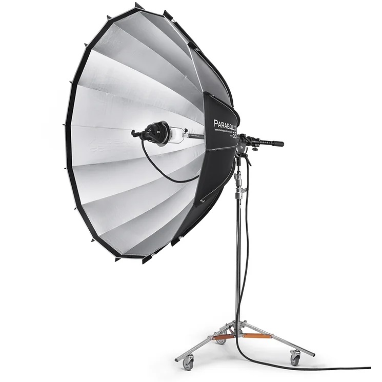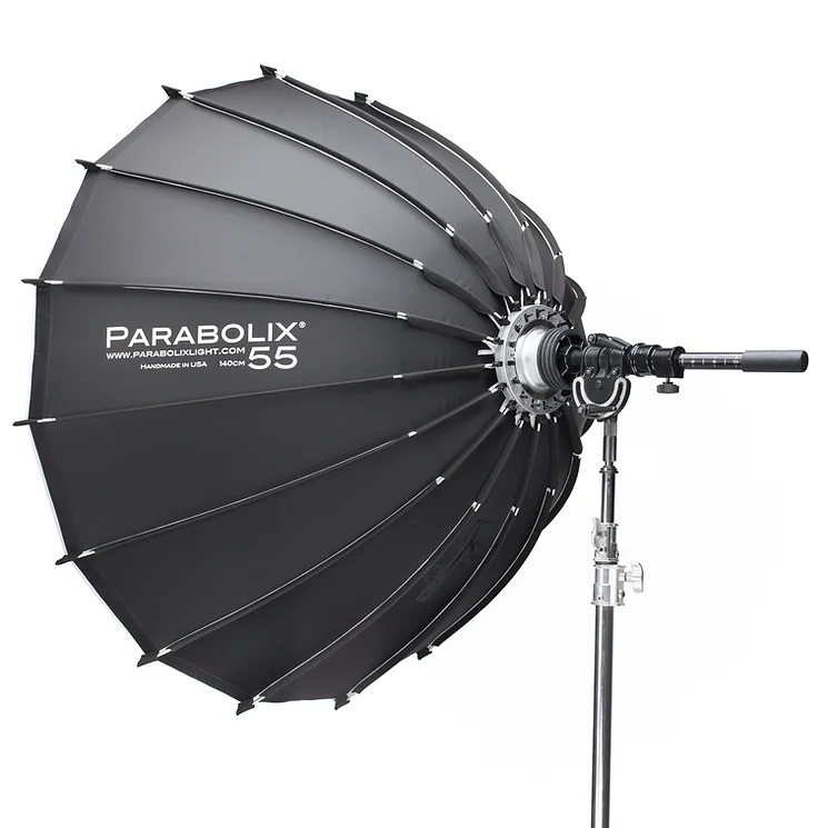 The Parabolix 55 is a large, broad-faced parabolic reflector that never misses. It provides an amazingly rich and beautiful soft light, with gorgeous contrast and detail. Designed to give wide light coverage with perfect wrap, while still being very portable and fast. Excellent for fashion, commercial photography and videography, look books, and beauty work. You really can't go wrong with this modifier! The 55" Reflector comes with the new fast-latching speed ring system, making setup and breakdown easy.