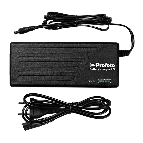 Optional quick charger for B1. Delivered with power cable and nylon storage pouch.