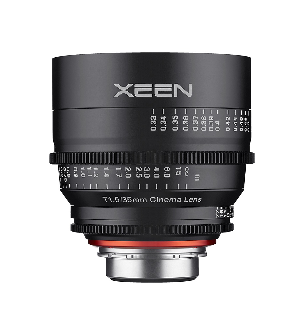 Rokinon's Xeen 35mm T1.5 Lens is built specifically for use as a cinema lens. It features an internal focus design so that the lens does not change size while focusing, minimizing the appearance of breathing when changing focus. Each lens in the set is multi-coated for good contrast, glare prevention, and color match to a factory standard, allowing you to assemble a set over time with minimal color shift. This 35mm lens provides what is considered a somewhat wide angle of view on full-frame cameras, and a tighter angle of view on smaller formats.