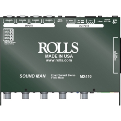 The MX410 is a four channel, microphone mixer with balanced XLR inputs and outputs. The unit is ideal for the broadcast and video markets. It has the same features of other ENG / portable mixers without the extremely high price. Applications include: * DV Field Production. * Electronic News Gathering. * Location Recording * Digital Recording. * Broadcast Remotes. * Desktop Mixing for Video Post Production.