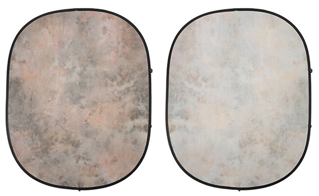 Savage Morning Haze Reversible Collapsible Background has a mottled design in shades of pink and gray that reverses to a lighter version of the same. Made of high-quality, non-reflective cotton that eliminates glare.