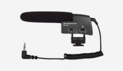 The MKE 400 is a small shot gun microphone for cameras with a lighting shoe mount and external microphone input.