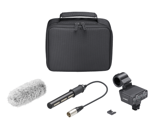 KIt includes the Sony ECM-XM1 shotgun microphone and a 2-channel XLR adapter box with independent level controls.