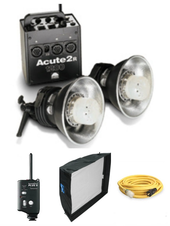 This portrait lighting kit includes your full set up for a great portrait shot, Including the portable background set up