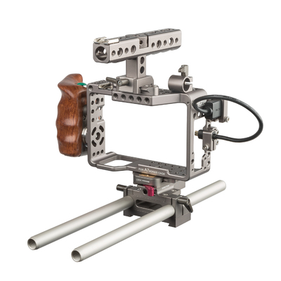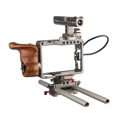Sony Alpha Series Handheld Camera Cage Rig with Start/Stop Wooden Handle Trigger for the a7R, a7RII, a7S, and a7SII by Tilta