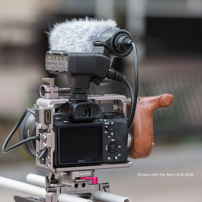 The cage is designed to fit around the hot shoe mount with easy access to the battery and side compartments. Among its many features include more than a hundred threaded hole mounts, a cold shoe mount and a 15-mm base plate with an integrated lens adapter.
