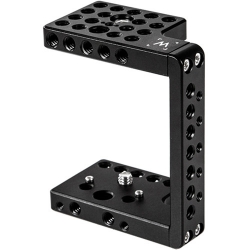 Pocket Cage turns the Blackmagic Pocket Cinema Camera into a production-ready tool. It attaches by two screws, one on the top with two locating pins and one one on the bottom with an additional two locating pins making it extremely secure. There are multiple mounting points on all sides allowing easy attachment of a tripod plate, accessories, or other production rigging. The battery door can open easily allowing access for SD card and battery changes.