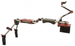 The Indie Kit takes our Cine Kit a step further by allowing the entire rig to be used shoulder-mounted. The Indie Kit includes all of the mounting equipment needed for the independent filmmaker – you can mount a matte box, follow focus, wireless microphone receiver and external monitor. The mount behind the shoulder pad holds batteries to power the monitor and accessories and provide a counterbalance to offset the weight of the camera and accessories. The rig can be easily balanced with a few quick adjustments and will give any professional camcorder the stability of a larger shoulder-mounted camera.
